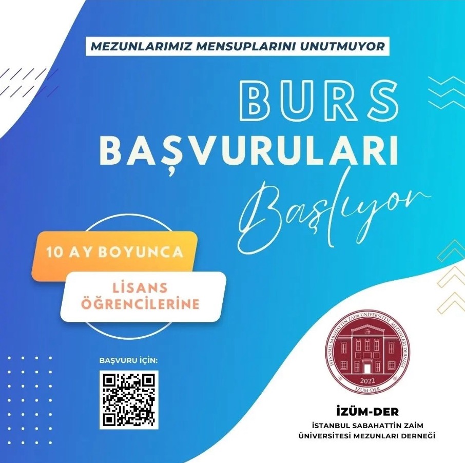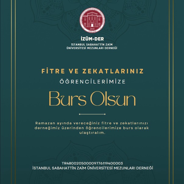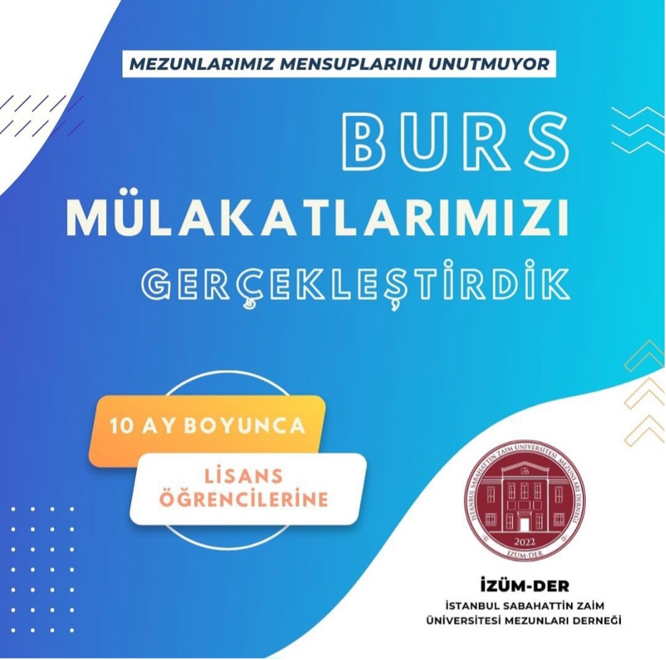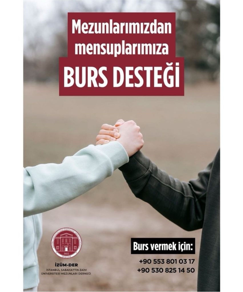 İZÜM-DER burs programları ile öğrencilerimize hem maddi destek sağlamayı hem de İstanbul Sabahattin Zaim Üniversitesi’nin değerlerine katkıda bulunacak bireyler yetiştirmeyi hedefliyoruz. Burslarımız, öğrencilerimizin akademik başarılarına katkı sağlamakla birlikte, onları üniversite topluluklarında ve sosyal sorumluluk projelerinde daha aktif rol almaya teşvik ediyor. Bu sayede, mezuniyet sonrasında da üniversitemizin kültürünü ve değerlerini koruyup geliştirmelerine katkıda bulunmayı amaçlıyoruz.